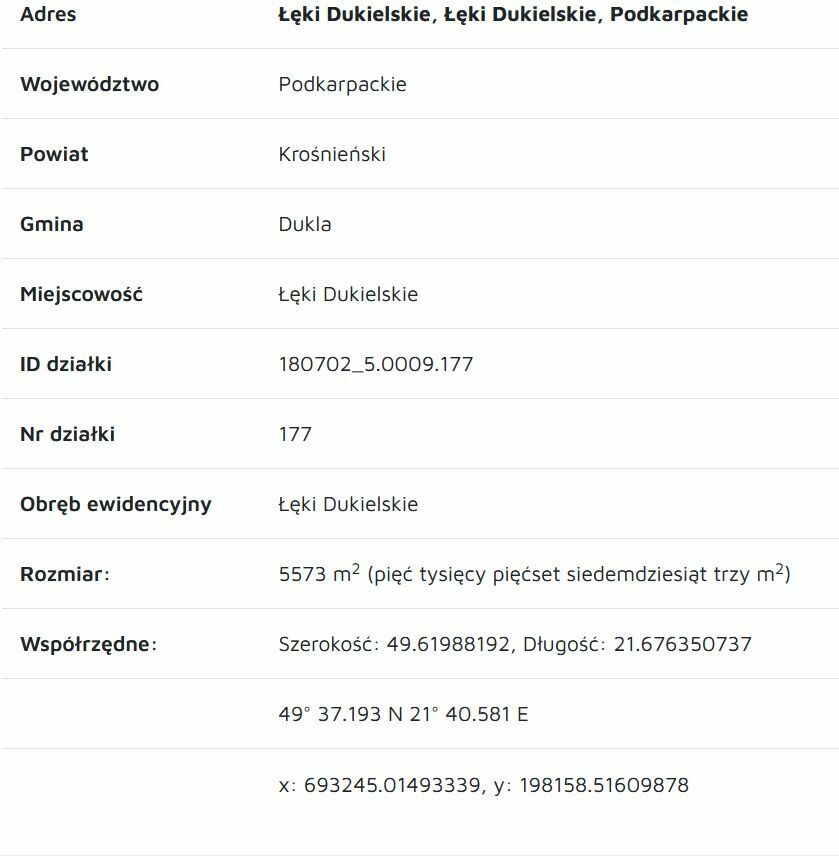 Działka leśna położona w obrębie Łęki Dukielskie. powierzchnia lasu 5572m2.Drzewostan zawiera drzewa około 80 letnie i od 25 lat nie był wcale wycinany.